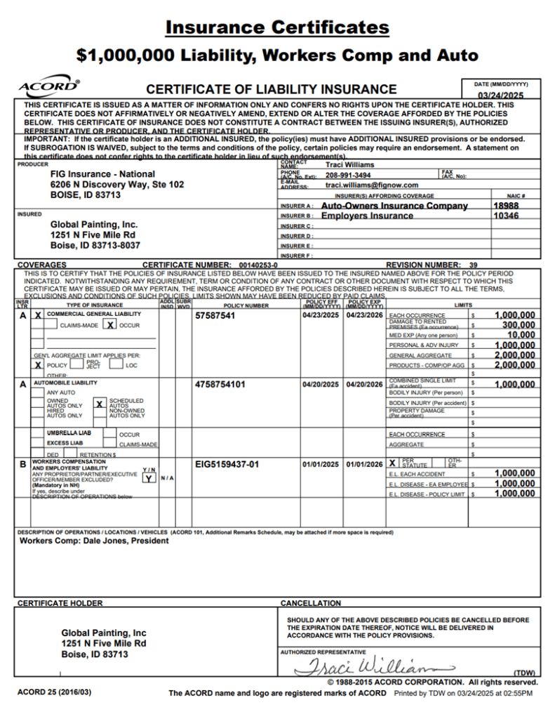 Insurance If you need any further information regarding insurance, please contact our office at (208) 395-0100